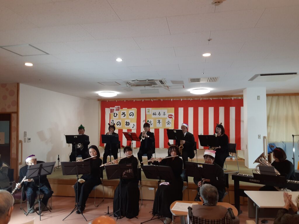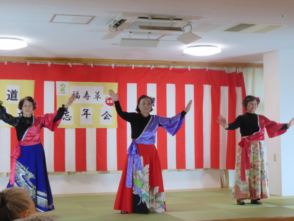 福寿草デイサービスセンターでは3日間忘年会を開催しました。催し物では地域の方々の慰問があり、踊りや演奏を披露してくださいました。利用者の方々は大きな笑いと拍手で大変喜ばれていました。また、お米が当たる抽選会を行いました。当たった方、おめでとうございました。今年も大変お世話になりました。来年もまたうまくいく年でありますように🐎