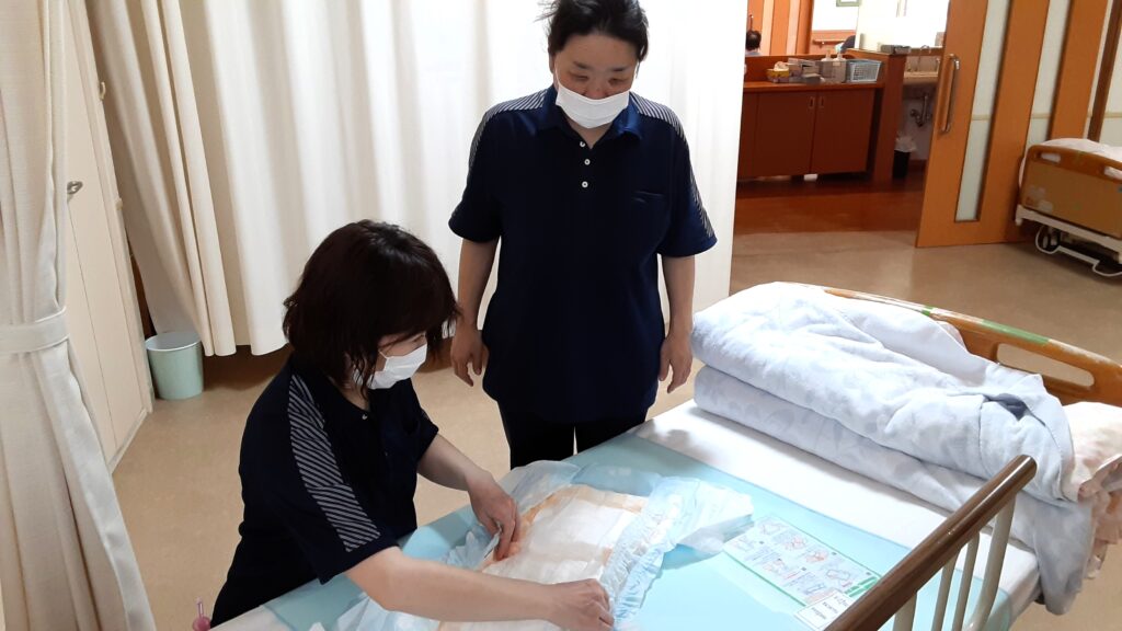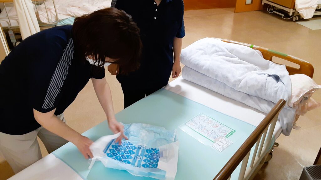合わせてオムツの当て方を再確認しました